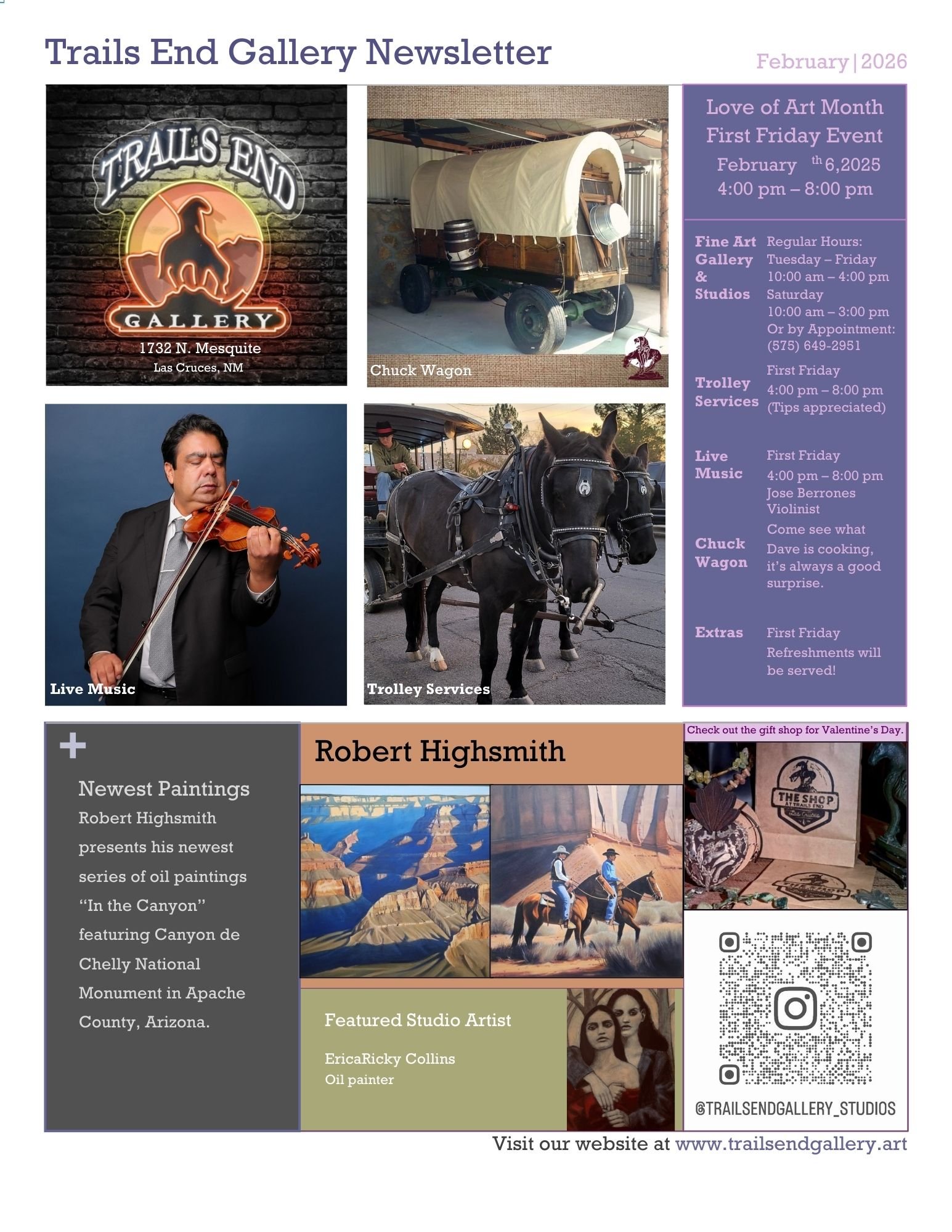 You can fill out the form below or contact us at: Trailsendgallerynm@gmail.com to get on the email list